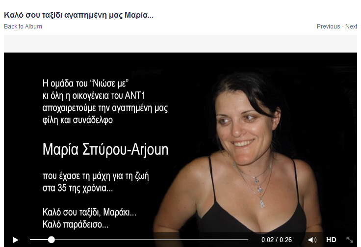 Η Μαρία έφυγε στα 35 της χρόνια χτυπημένη από τον καρκίνο, αλλά η μνήμη της έμεινε χαραγμένη στο μυαλό όλων αφού ήταν ιδιαίτερα αγαπητή.