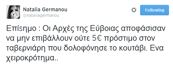 Η Ναταλία έκανε ανάρτηση και στο Twitter: